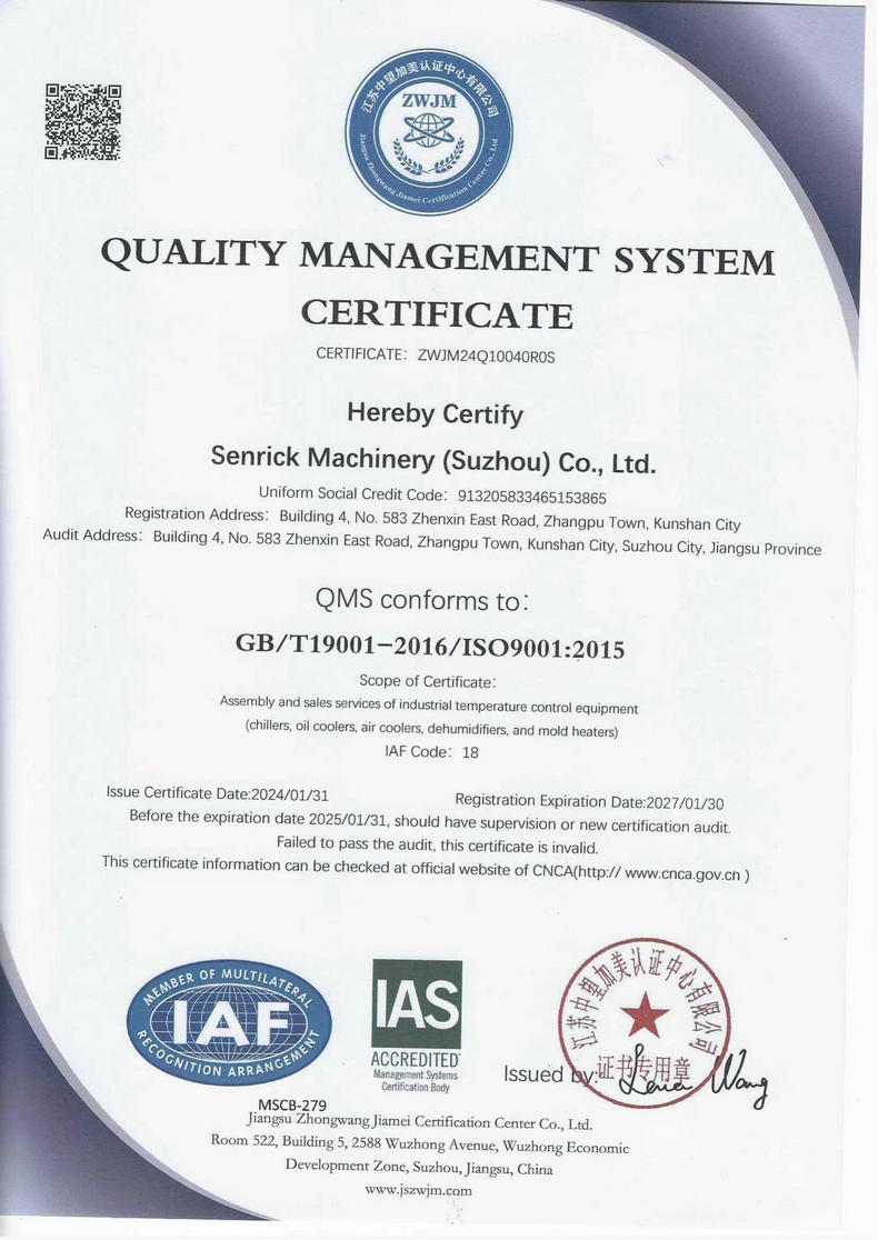 森瑞克機械(蘇州)有限公司(簡稱:SENRICK)是一家中外合作性企業(yè),引進技術,專注于工業(yè)制冷設備,工業(yè)溫控設備,非標制冷設備,集激光,化工,真空設備輔機等集研發(fā)、生產、銷售、服務于一體的的現代化科技企業(yè)。公司擁有完善的制造設備,先進的檢測系統,獨立的加工、生產工藝,一支開拓創(chuàng)新專業(yè)有素的技術人才團隊,以及全面的質量控制體系,為產品質量的不斷優(yōu)化提供了強大的保障,以確保滿足不同市場的各種需求。經過多年的努力企業(yè)相繼研發(fā)生產出了工業(yè)冷水機,工業(yè)冷風機,工業(yè)冷油機,工業(yè)機,低溫冷水機,低溫冷風機,低溫冷油機,螺桿式冷水機...